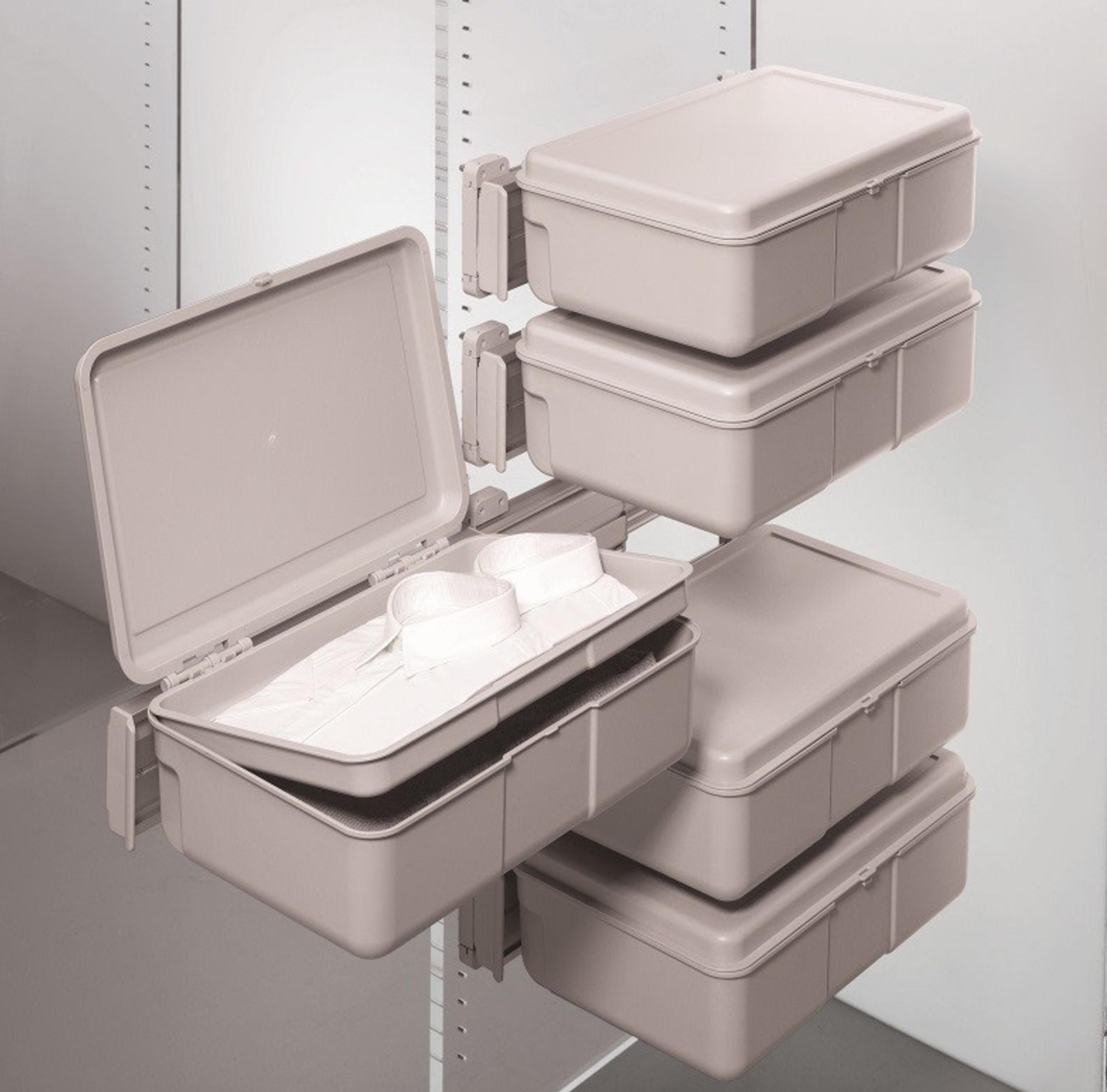 - Fastens to one side of the wardrobe